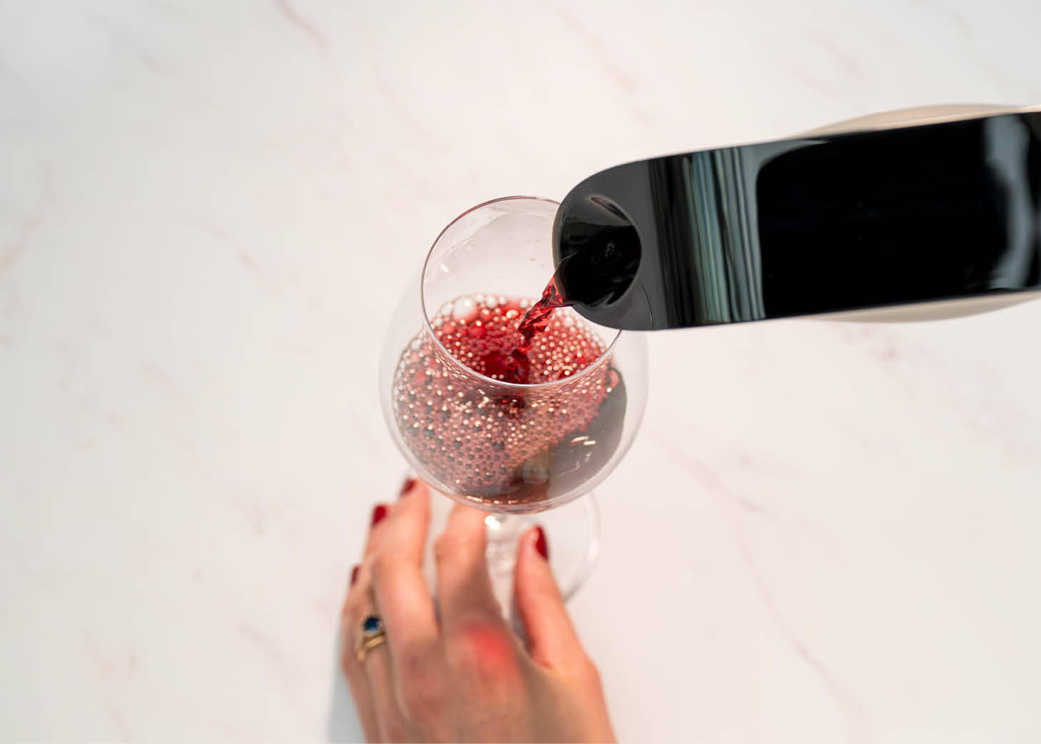 Seul le vin servi est aéré, le reste de la bouteille est intact. Vous pouvez donc tester de nombreux niveaux d'aération pour une même bouteille et vous adapter aux goûts de chacun de vos convives.